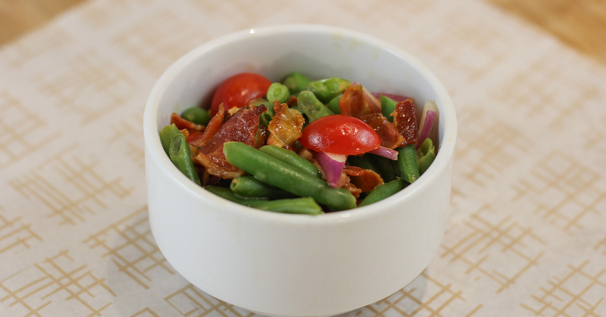 Fresh green beans, grape tomatoes, red onions & applewood smoked bacon tossed in honey-dijon dressing