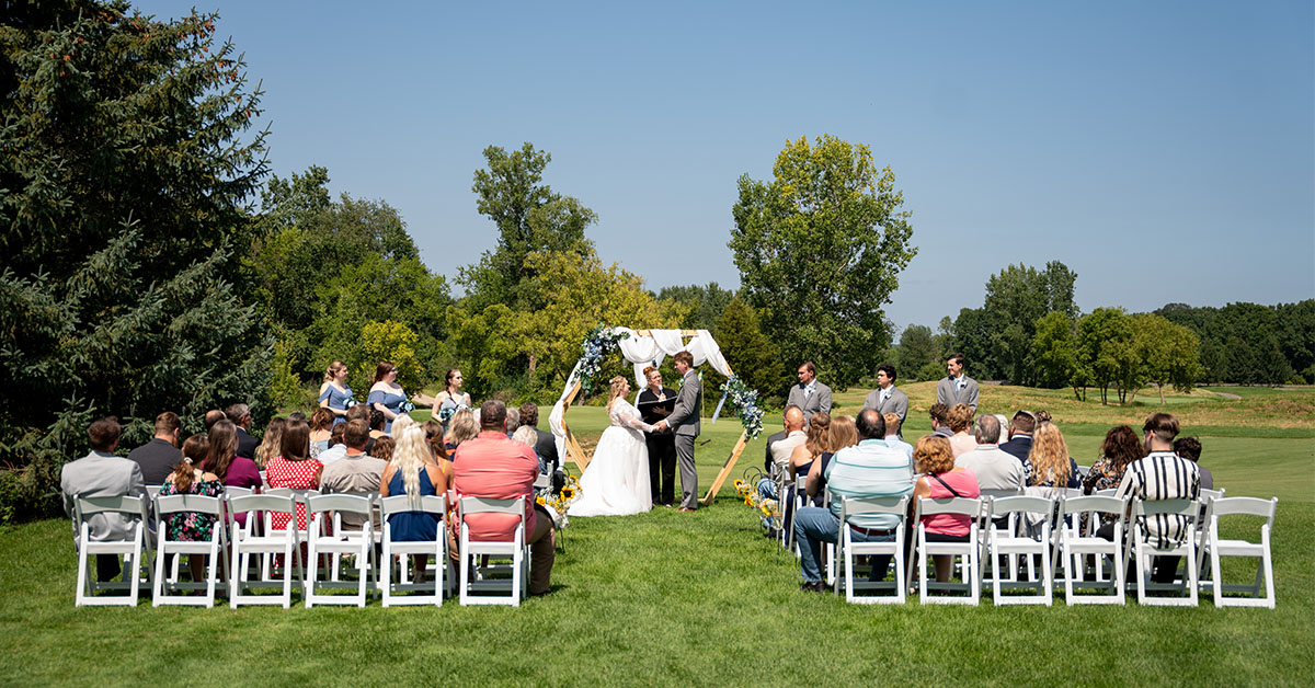 Welcome to The Pavilion at Thornapple Pointe Golf Course, a premier event space that offers a stunning setting for your special occasion.