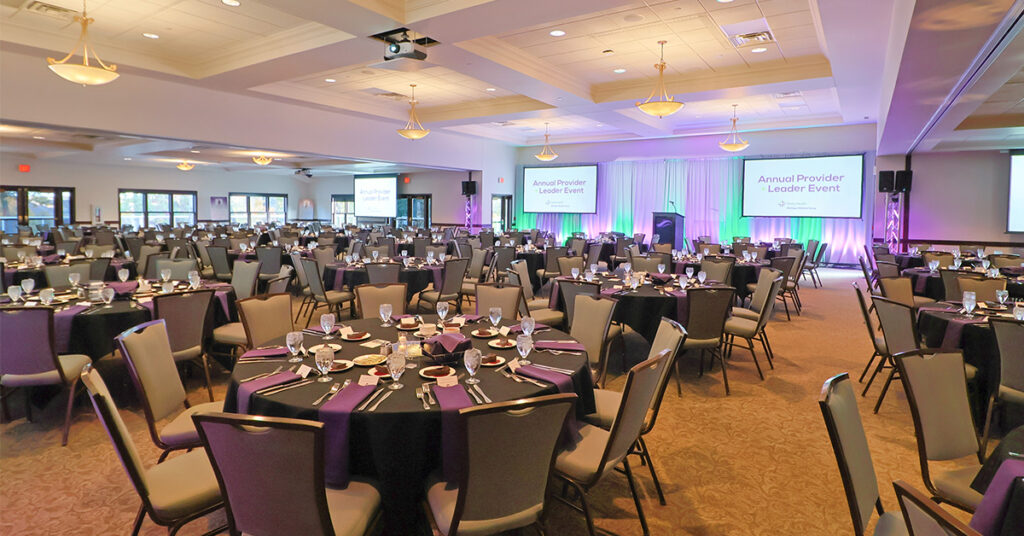 Welcome to the Grand Oaks Ballroom at Thousand Oaks Golf Club! Our ballroom is the perfect space for large events, with a capacity of up to 450 guests.